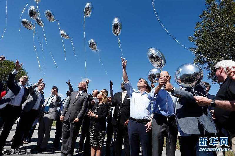 當(dāng)?shù)貢r間2018年2月15日,美國佛羅里達(dá)州科勒爾斯普林斯,民眾悼念槍擊案遇難者。當(dāng)?shù)貢r間14日下午2點(diǎn)25分左右,美國佛羅里達(dá)州南部帕克蘭一所高中發(fā)生槍擊案,目前已致至少17人死亡,多人受傷。(圖片來源:視覺中國)