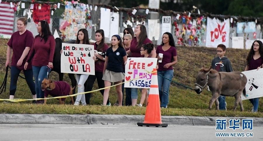當地時間2月28日,美國佛羅里達州帕克蘭,發生槍擊案的道格拉斯中學復課,學生和教職工重返校園,大批警察出動維護治安。2月14日,一名19歲的槍手在學校里開槍,造成17人死亡。(圖片來源:視覺中國)