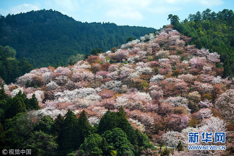 4月3日,日本奈良吉野,當地櫻花盛放,吸引眾多游客前來觀賞。(圖片來源:視覺中國)