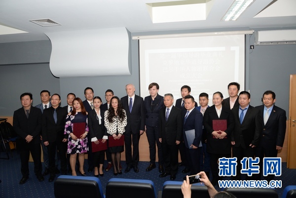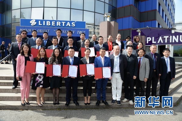 4月11日,首批通過克羅地亞導游職業資格考試的中國導游與歐洲地區華人旅游業者代表在薩格勒布合影。新華社記者高磊 攝?