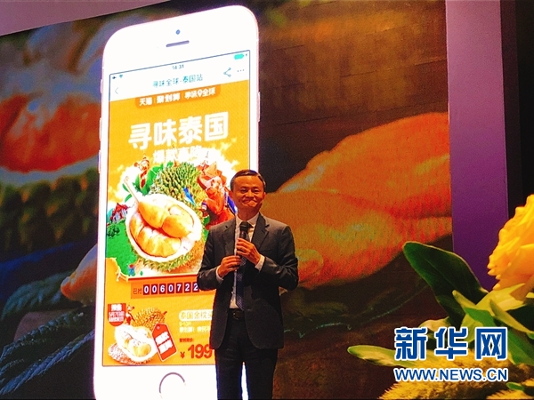 4月19日,阿里巴巴集團(tuán)董事局主席馬云與泰國政府簽訂備忘錄,在泰國建設(shè)大型智慧物流樞紐,讓榴蓮等農(nóng)產(chǎn)品的出口朝著72小時(shí)送達(dá)加速。新華網(wǎng)發(fā) 陳家寶攝