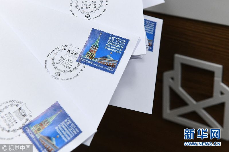 當(dāng)?shù)貢r間2018年5月7日,俄羅斯莫斯科,俄羅斯發(fā)行普京就職紀(jì)念郵票。(圖片來源:視覺中國)