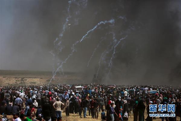 5月14日,在加沙城以東的加沙地帶與以色列交界地區,巴勒斯坦示威者與以色列軍隊發生沖突。巴勒斯坦民眾14日在巴各地舉行大規模游行示威,抗議美國駐以色列使館在耶路撒冷開館。新華社發