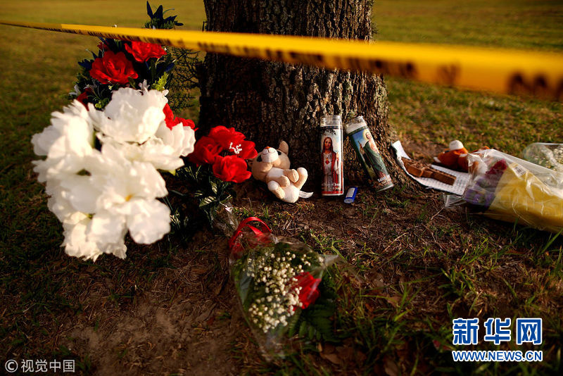 美國民眾獻花悼念圣菲高中槍擊案遇難者