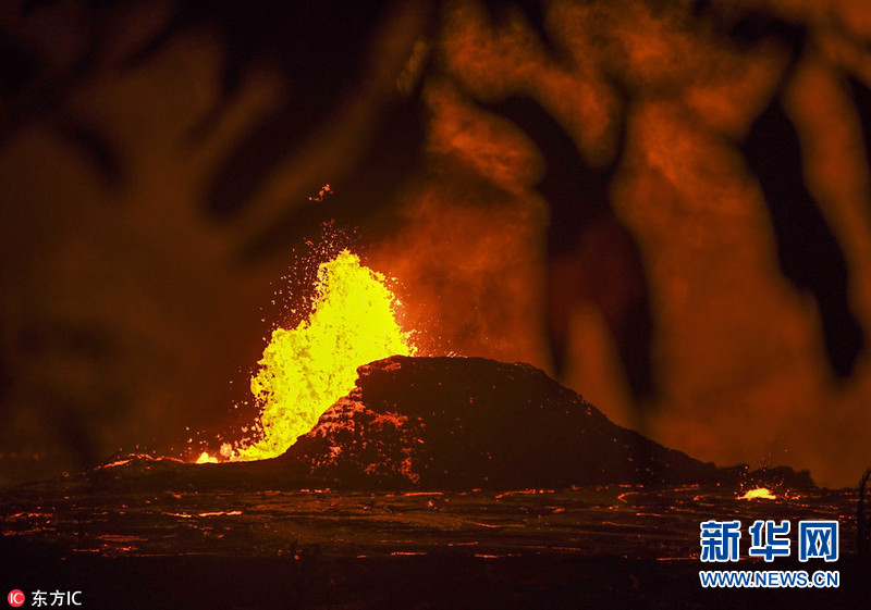 5月23日,美國夏威夷,基拉韋厄火山繼續噴發,火紅巖漿從裂縫涌出,畫面震撼。(圖片來源:東方IC)