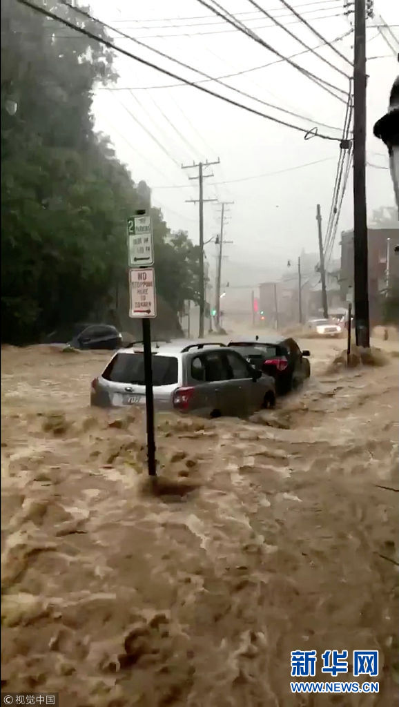 美國馬里蘭州爆發洪水 城市街道變湍急河流