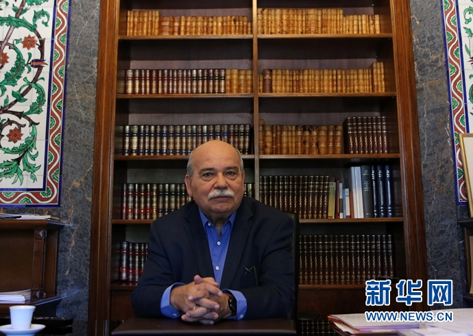 6月15日,在希臘雅典,希臘議長武齊斯在他的辦公室接受新華社記者采訪。希臘議長武齊斯日前在接受新華社記者采訪時表示,希望希中雙邊關系在更廣闊領域得到更快發展。 新華社發(馬里奧斯·羅洛斯攝)