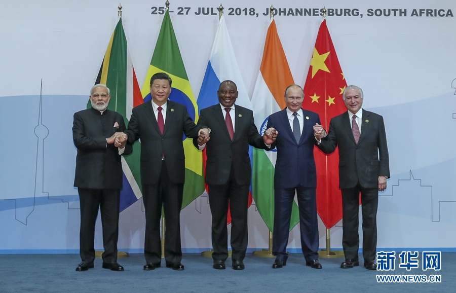 新華社約翰內斯堡7月26日電(記者李生江 陳贄 駱珺)金磚國家領導人第十次會晤26日在南非約翰內斯堡舉行。南非總統拉馬福薩主持。中國國家主席習近平、巴西總統特梅爾、俄羅斯總統普京、印度總理莫迪出席。五國領導人圍繞“金磚國家在非洲:在第四次工業革命中共謀包容增長和共同繁榮”主題,就金磚國家合作及共同關心的重大國際問題深入交換看法,達成廣泛共識。