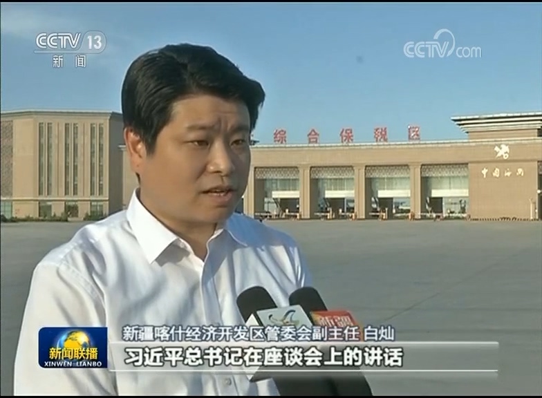 新疆喀什經(jīng)濟(jì)開發(fā)區(qū)管委會(huì)副主任 白燦:習(xí)近平總書記在座談會(huì)上的講話,為我們做好下一階段“一帶一路”工作提供了根本的遵循。我們將和周邊沿線國家按照“共商、共建、共享”的原則,共同推動(dòng)跨國的基礎(chǔ)設(shè)施建設(shè)的互聯(lián)互通。