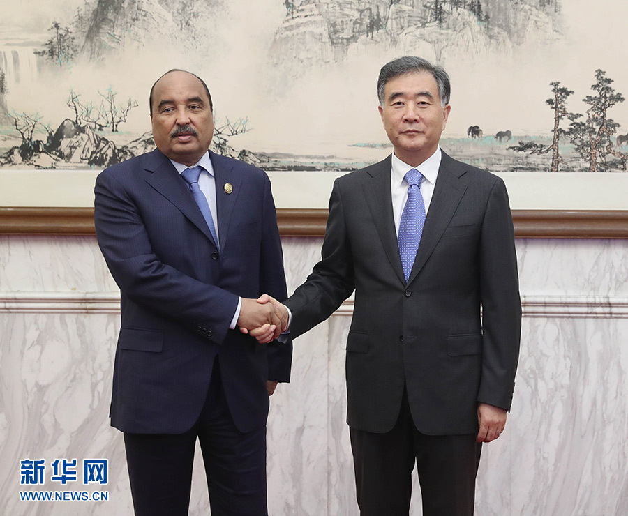 9月2日,全國政協主席汪洋在北京釣魚臺國賓館會見毛里塔尼亞總統阿齊茲。 新華社記者 劉衛兵 攝