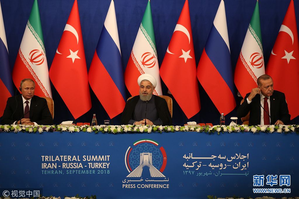 當地時間2018年9月7日,伊朗德黑蘭,當日,俄羅斯、土耳其和伊朗三國首腦齊聚伊朗首都德黑蘭舉行峰會,討論敘利亞局勢。(圖片來源:視覺中國)