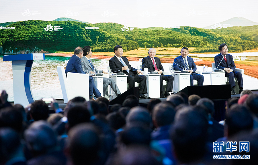 9月12日,第四屆東方經(jīng)濟論壇全會在符拉迪沃斯托克舉行。中國國家主席習近平、俄羅斯總統(tǒng)普京、蒙古國總統(tǒng)巴特圖勒嘎、日本首相安倍晉三、韓國總理李洛淵等出席。 新華社記者黃敬文攝