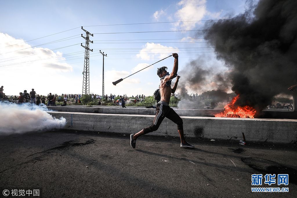 ????? 當地時間2018年9月18日,加沙,巴勒斯坦人在加沙地帶北部邊境緩沖地帶舉行集會,抗議以色列對該地區的干預,遭到以色列軍隊反擊。(圖片來源:視覺中國)