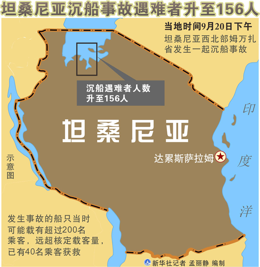 新華社達累斯薩拉姆9月22日電(記者李斯博 高竹)坦桑尼亞官員22日說,該國西北部姆萬扎?。玻叭瞻l生的沉船事故已造成至少156人死亡。