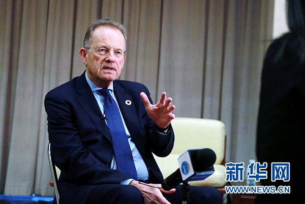 聯合國日內瓦辦事處總干事邁克爾·穆勒在北京接受新華社記者專訪(11月14日攝)。新華社記者 潘旭 攝