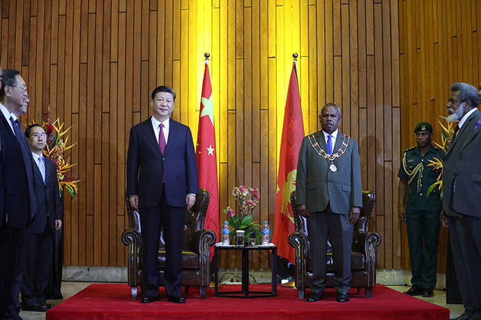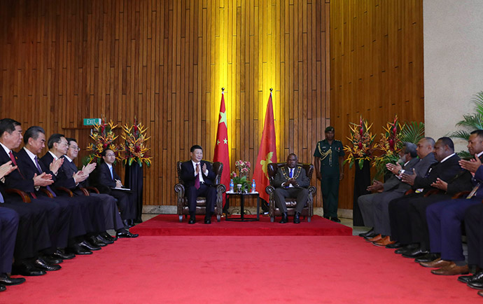 11月16日,國家主席習近平在莫爾茲比港會見巴布亞新幾內亞總督達達埃。新華社記者 鞠鵬 攝