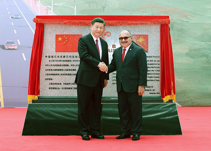11月16日,國家主席習近平在莫爾茲比港和巴布亞新幾內亞總理奧尼爾共同出席中國援建的獨立大道移交啟用儀式。新華社記者 黃敬文 攝