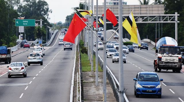 13日,當地最大英文報紙《婆羅洲公報》在頭版顯著位置刊發了習主席即將來訪的消息。為迎接中國國家元首時隔13年再次到訪,從斯里巴加灣機場到文萊蘇丹哈桑納爾居住的努洛伊曼王宮的馬路上,早早掛起了鮮艷的五星紅旗。