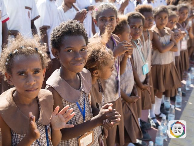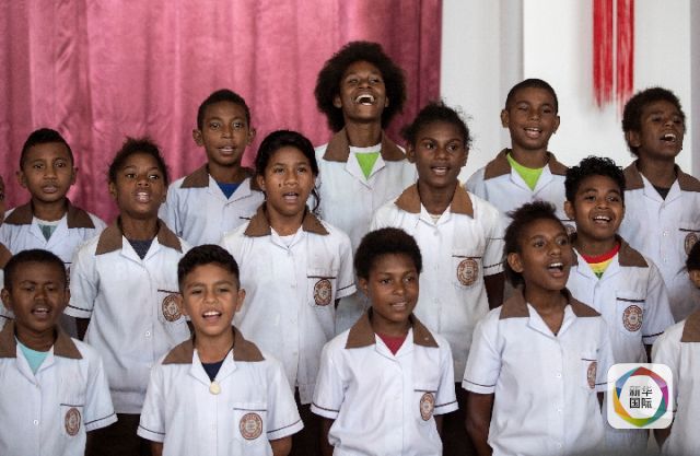 2018年11月13日,巴布亞新幾內(nèi)亞首都莫爾茲比港。孩子們?yōu)闅g迎出席中國(guó)-巴新友誼學(xué)校·布圖卡學(xué)園啟用儀式的習(xí)近平主席精心排練歌曲《茉莉花》。(新華社記者費(fèi)茂華攝)