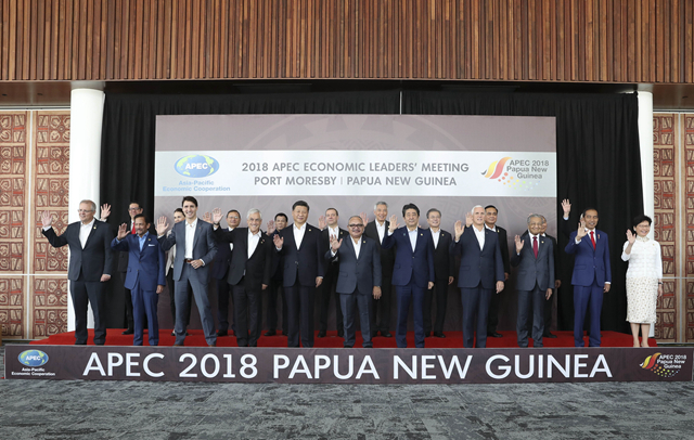 2018年11月18日,亞太經(jīng)合組織第二十六次領(lǐng)導(dǎo)人非正式會(huì)議在巴布亞新幾內(nèi)亞莫爾茲比港舉行。國(guó)家主席習(xí)近平出席并發(fā)表題為《把握時(shí)代機(jī)遇 共謀亞太繁榮》的重要講話。會(huì)議開(kāi)始前,習(xí)近平同其他亞太經(jīng)合組織經(jīng)濟(jì)體領(lǐng)導(dǎo)人、代表合影。(新華社記者丁林?jǐn)z)
