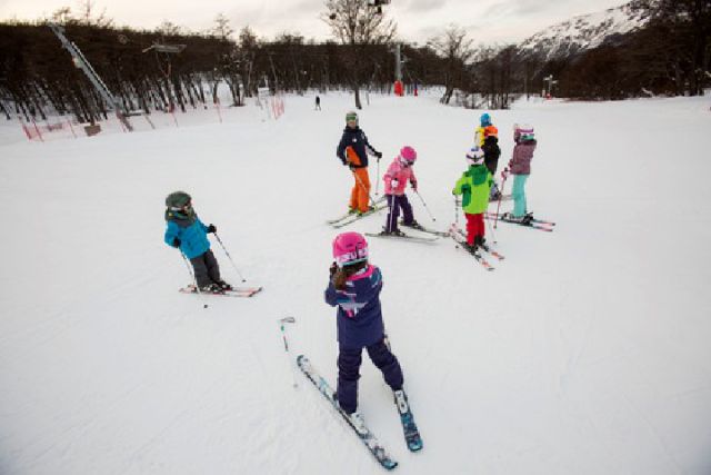 阿根廷南部城市烏斯懷亞,一群孩子在練習滑雪。(馬丁·薩巴拉攝)