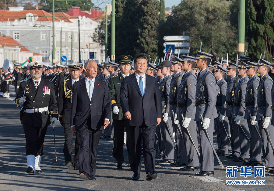 當(dāng)?shù)貢r(shí)間12月4日,國家主席習(xí)近平在里斯本同葡萄牙總統(tǒng)德索薩舉行會(huì)談。會(huì)談前,德索薩總統(tǒng)在帝國廣場為習(xí)近平舉行隆重歡迎儀式。 新華社記者李學(xué)仁攝