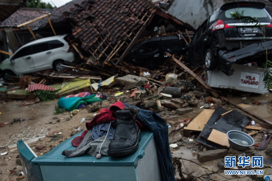 12月23日,在印度尼西亞萬丹省板底蘭,海嘯過后一片狼藉。印尼西部巽他海峽22日晚發生海嘯。海嘯發生時當地沒有監測到地震活動,初步懷疑海嘯是由喀拉喀托火山噴發引發海底巖層滑坡和月圓引發漲潮共同所致。 新華社發(維里攝)