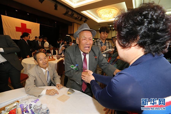 8月24日,韓朝離散家屬在朝鮮金剛山參加見(jiàn)面活動(dòng)。第21次韓朝離散家屬團(tuán)聚活動(dòng)第二輪會(huì)面8月24日在朝鮮金剛山開(kāi)始進(jìn)行。24日至26日期間,共有81名朝方離散家屬同韓方親屬共度約12個(gè)小時(shí)的團(tuán)聚時(shí)光。新華社/韓朝離散家屬團(tuán)聚活動(dòng)韓方聯(lián)合報(bào)道團(tuán)