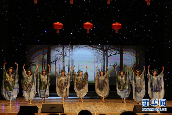 1月23日,在白俄羅斯首都明斯克,白俄羅斯國(guó)家模范功勛舞蹈團(tuán)的藝術(shù)家們?cè)凇皻g樂(lè)春節(jié)”歌舞晚會(huì)上表演。新華社記者 魏忠杰 攝