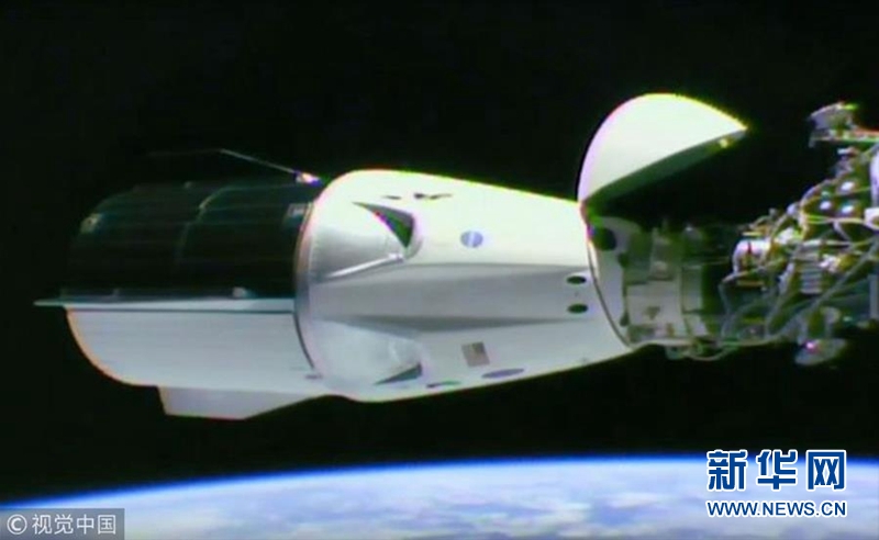 2019年3月3日,美國宇航局在任務(wù)現(xiàn)場(chǎng)直播視頻宣布,SpaceX“龍”飛船成功與國際空間站進(jìn)行對(duì)接。3月2日,載人“龍”飛船搭乘“獵鷹9”火箭在美國佛羅里達(dá)州肯尼迪航天中心39A發(fā)射臺(tái)升空。飛船里有個(gè)假人模型,用來記錄真實(shí)宇航員承受的各項(xiàng)數(shù)據(jù)。(視頻截圖)(圖片來源:視覺中國)
