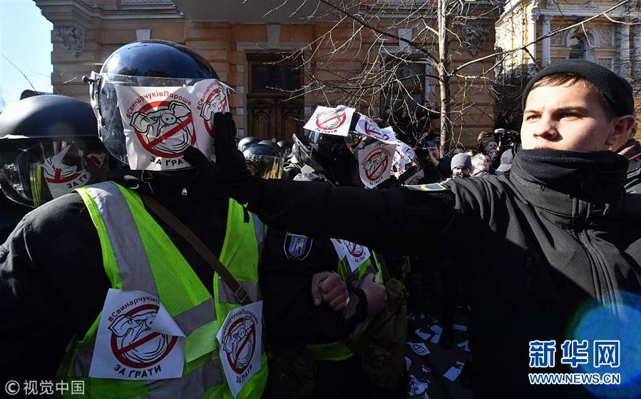 當(dāng)?shù)貢r(shí)間2019年3月9日,烏克蘭基輔,烏克蘭民族主義政黨的激進(jìn)分子集會(huì)要求調(diào)查烏克蘭武裝部隊(duì)官員的腐敗問題,與警方發(fā)生激烈沖突。(圖片來源:視覺中國)