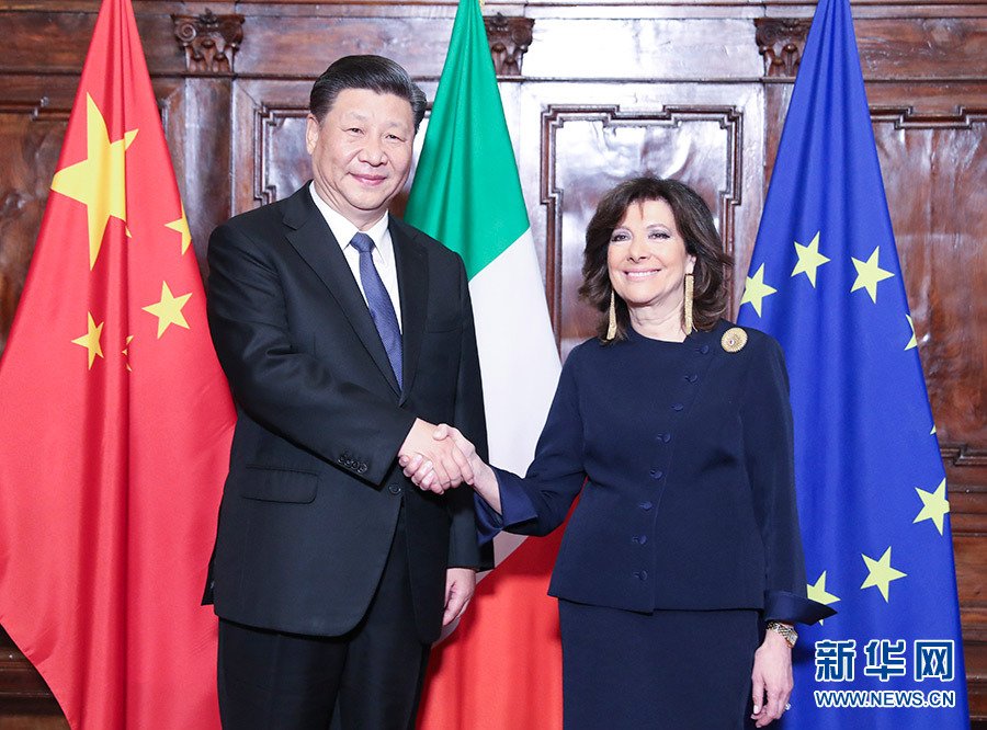3月22日,國家主席習近平在羅馬會見意大利參議長卡塞拉蒂。 新華社記者 姚大偉 攝