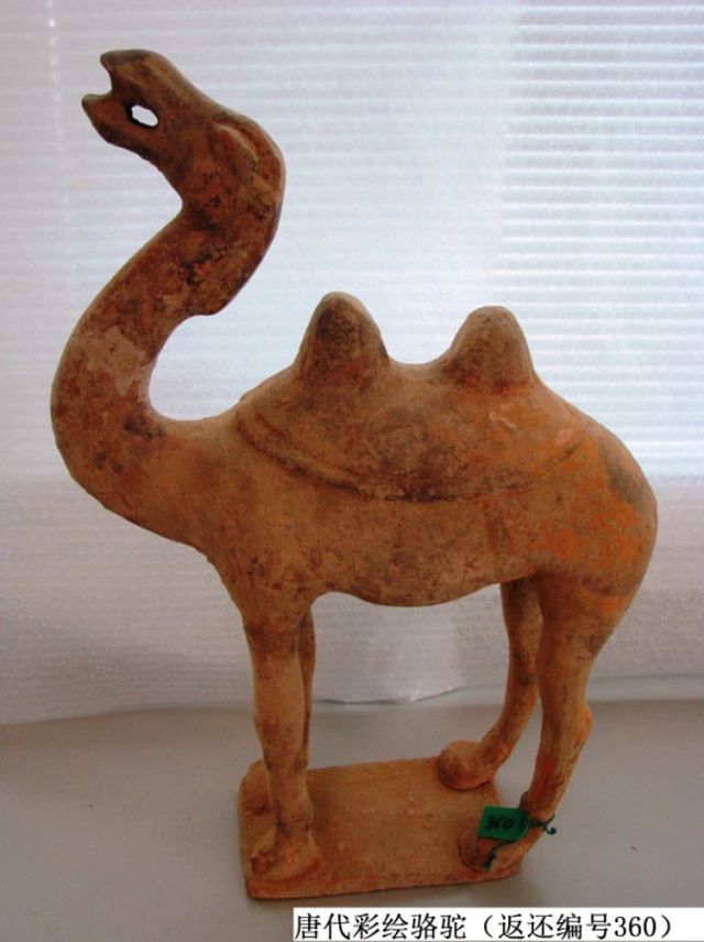 這是唐代彩繪駱駝(返還編號360),駱駝作昂首嘶鳴狀。