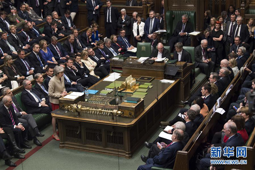 3月29日,在英國倫敦,英國首相特雷莎·梅出席議會下院辯論。英國議會下院29日投票否決了“脫歐”協議關鍵部分,這進一步增加了英國“脫歐”的不確定性。新華社發(英國議會攝影師馬克·達菲攝)