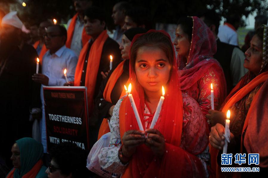 巴基斯坦學(xué)生燃燭悼念斯里蘭卡爆炸遇難者