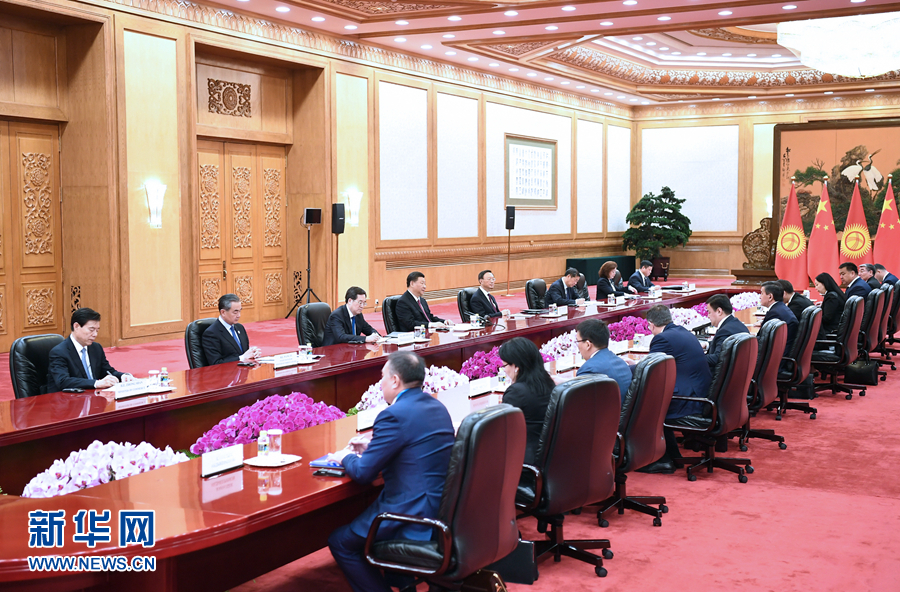 4月28日,國(guó)家主席習(xí)近平在北京人民大會(huì)堂會(huì)見(jiàn)吉爾吉斯斯坦總統(tǒng)熱恩別科夫。 新華社記者 謝環(huán)馳 攝