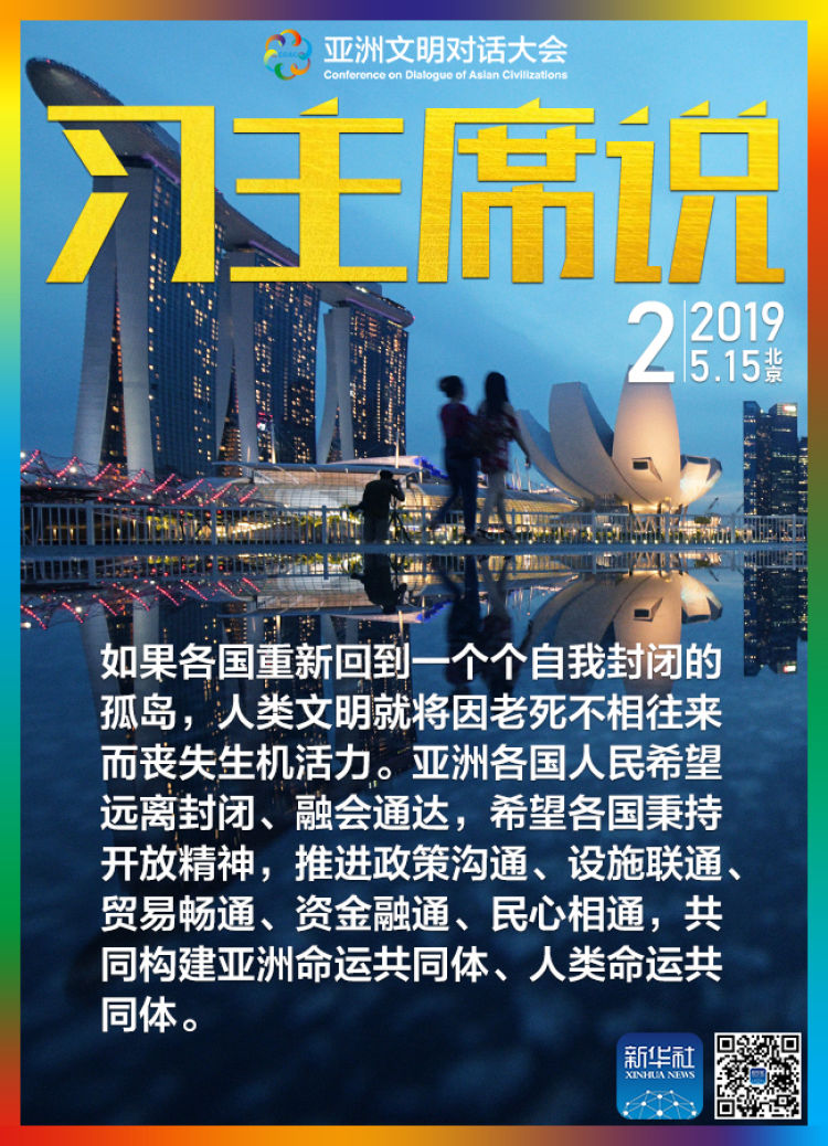 如果各國重新回到一個個自我封閉的孤島,人類文明就將因老死不相往來而喪失生機(jī)活力。亞洲各國人民希望遠(yuǎn)離封閉、融會通達(dá),希望各國秉持開放精神,推進(jìn)政策溝通、設(shè)施聯(lián)通、貿(mào)易暢通、資金融通、民心相通,共同構(gòu)建亞洲命運(yùn)共同體、人類命運(yùn)共同體。