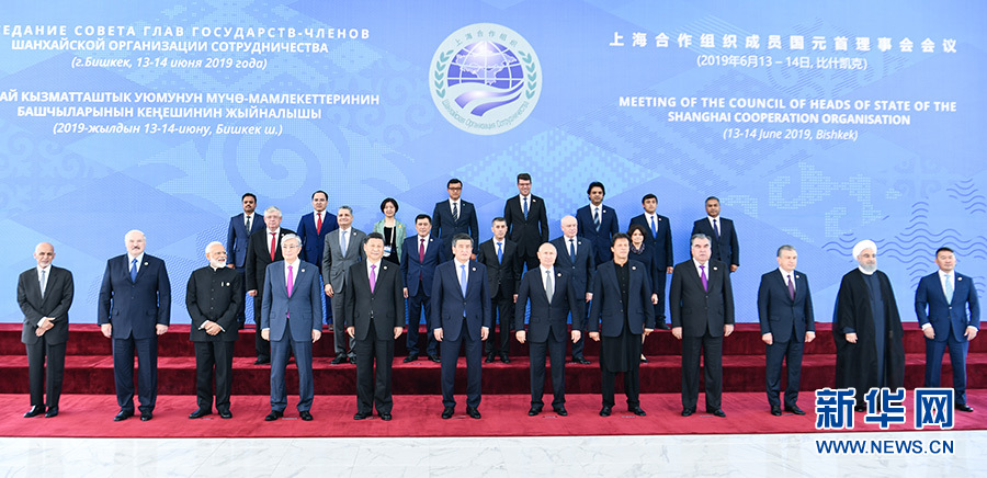 6月14日,上海合作組織成員國元首理事會第十九次會議在吉爾吉斯斯坦首都比什凱克舉行。國家主席習(xí)近平同印度總理莫迪、哈薩克斯坦總統(tǒng)托卡耶夫、吉爾吉斯斯坦總統(tǒng)熱恩別科夫、巴基斯坦總理伊姆蘭·汗、俄羅斯總統(tǒng)普京、塔吉克斯坦總統(tǒng)拉赫蒙、烏茲別克斯坦總統(tǒng)米爾濟約耶夫出席會議。習(xí)近平在會上發(fā)表重要講話。這是小范圍會談前,上海合作組織成員國元首集體合影。 新華社記者 謝環(huán)馳 攝
