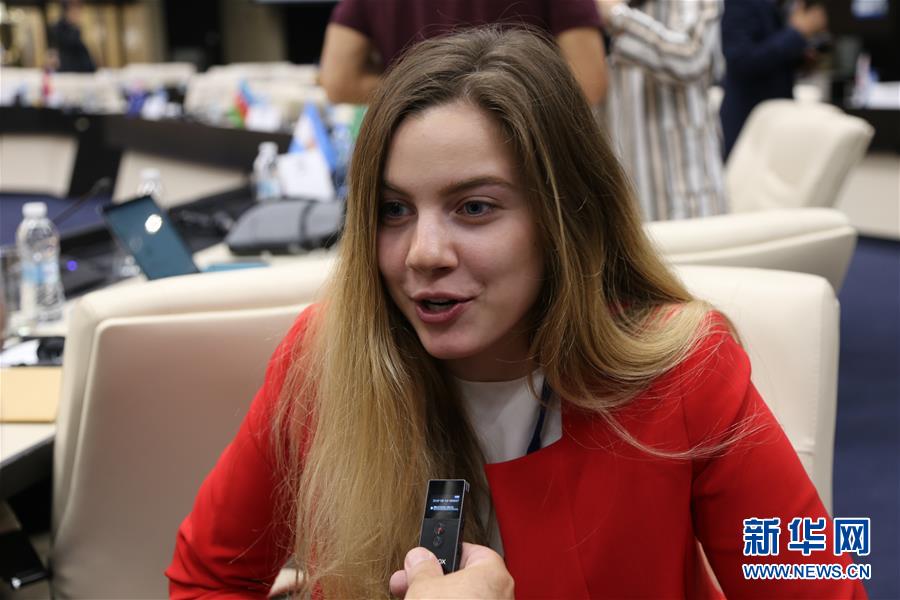 6月14日,在保加利亞首都索非亞,新華社、俄羅斯塔斯社和中國搜狗公司共同研發的俄語AI合成主播“麗莎”(Lisa)的真人原型、塔斯社國際關系部首席專家澤連斯卡婭接受新華社記者采訪。新華社記者 戰小漪 攝