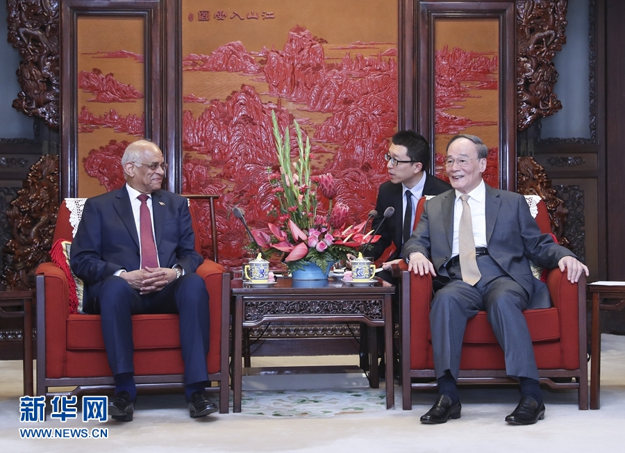 新華社北京6月19日電(記者孫奕)國家副主席王岐山19日在中南海紫光閣會見埃及議長阿里。