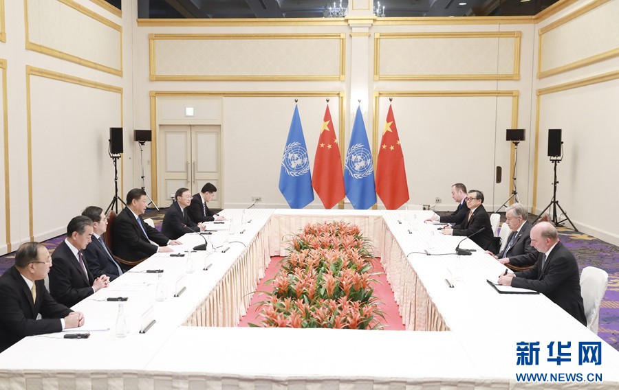 習近平指出,中國始終支持多邊主義,支持聯合國在國際事務中發揮積極作用。形勢越是復雜嚴峻,越要彰顯聯合國的權威和作用。我們要推動全世界在聯合國旗幟下,實現更大團結和進步。中國將繼續以實際行動支持聯合國和秘書長的工作。
