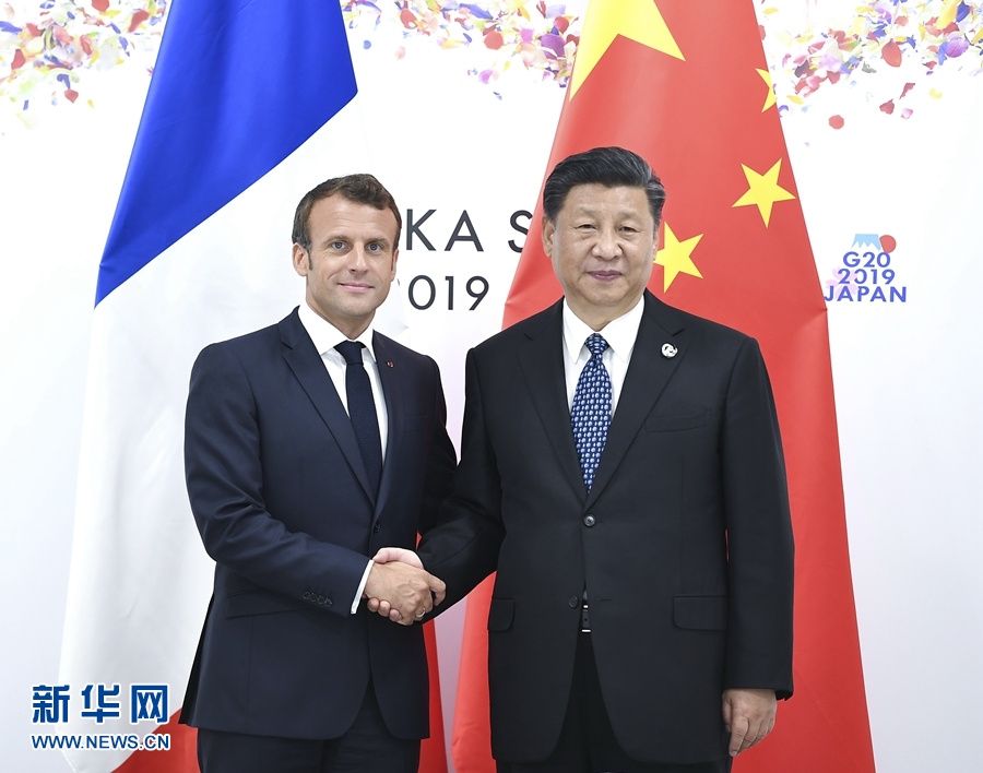 6月29日,國家主席習近平在大阪會見法國總統馬克龍。 新華社記者 燕雁 攝