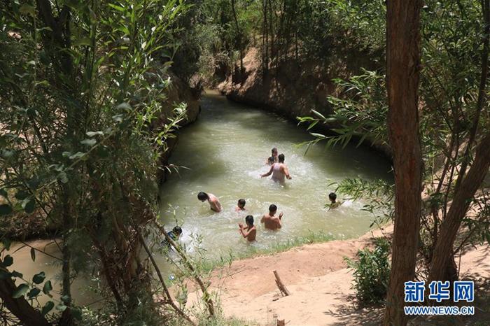 7月19日,在阿富汗北部朱茲詹省希比爾甘,當(dāng)?shù)貎和谒杏斡炯{涼。新華社發(fā) 穆罕默德·詹·阿里亞 攝