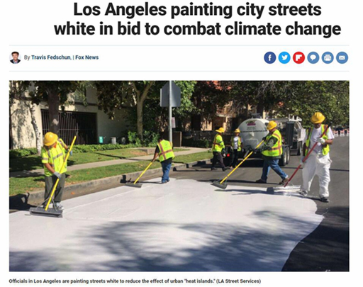 常見的黑色柏油馬路很容易吸收熱量,加劇熱島效應(yīng)。近年來,美國洛杉磯就想出了新法子來降低柏油馬路的加熱作用:使用一種特殊材料,給馬路“穿上”一件“白色外套”。