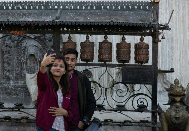山多、古跡多、節日多是尼泊爾為人津津樂道的三個特色?!暗沦惞潯笔悄岵礌柕淖畲蠊澣铡Ec中國人過春節習俗相似,尼泊爾人也要在節日期間家庭團聚、走親訪友。額頭的紅色“提卡”是來自長輩的祝福。新華社記者王婧嬙攝