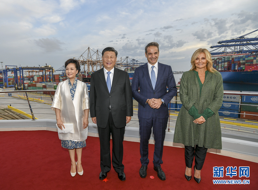 當地時間11月11日,國家主席習近平和夫人彭麗媛在希臘總理米佐塔基斯夫婦陪同下,共同參觀中遠海運比雷埃夫斯港項目。 新華社記者 李學仁 攝