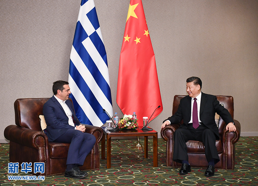 當(dāng)?shù)貢r(shí)間11月12日,國(guó)家主席習(xí)近平在雅典會(huì)見(jiàn)希臘前總理齊普拉斯。 新華社記者 謝環(huán)馳 攝