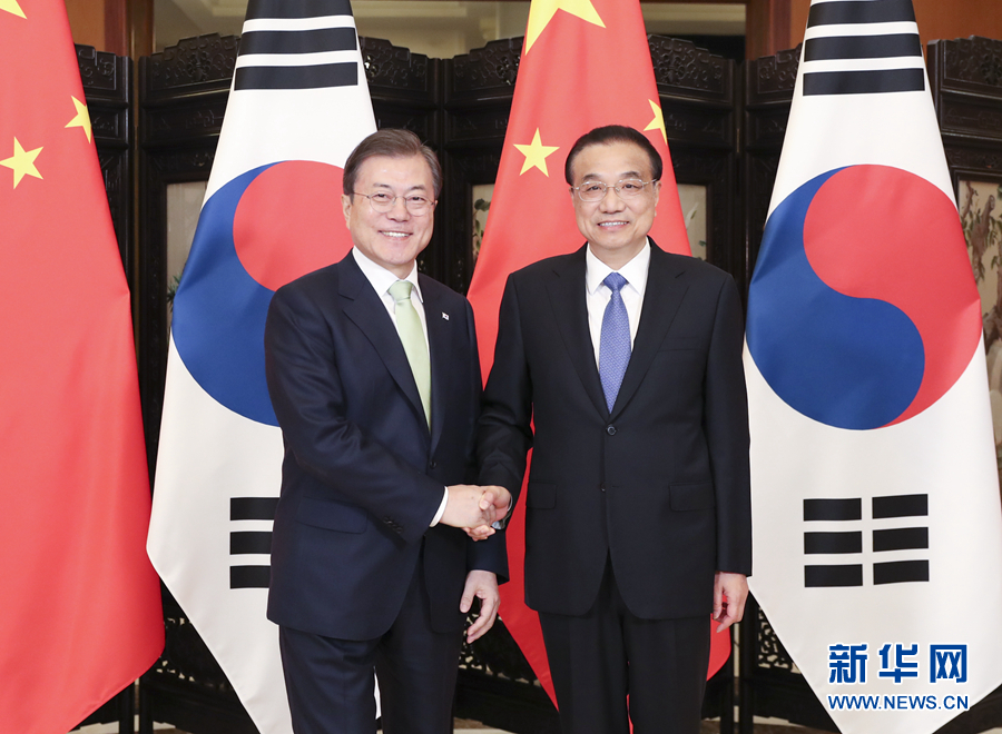 12月23日,國務(wù)院總理李克強在四川成都會見出席第八次中日韓領(lǐng)導人會議的韓國總統(tǒng)文在寅。新華社記者 丁海濤 攝