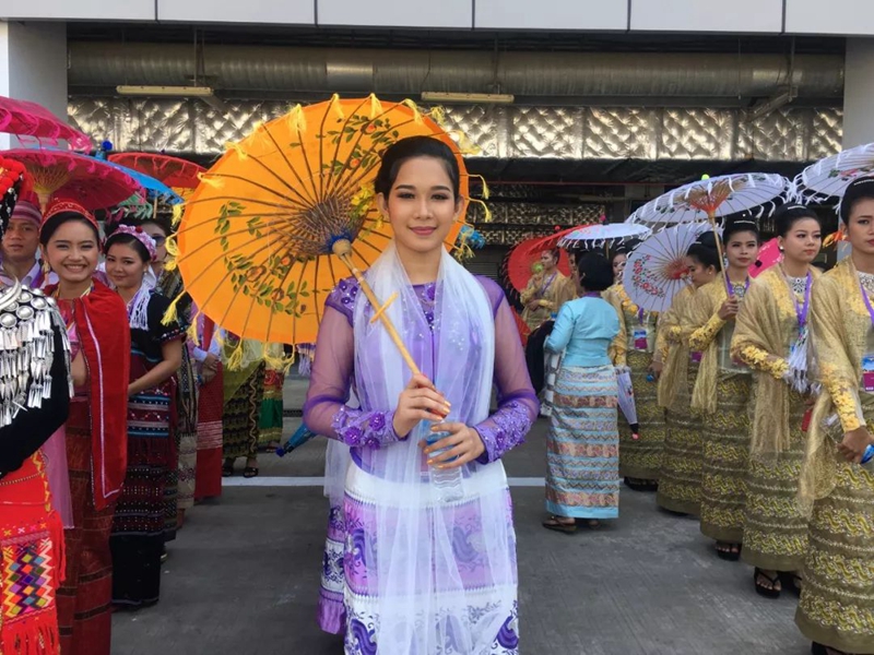 暖陽下,中緬兩國國旗招展。