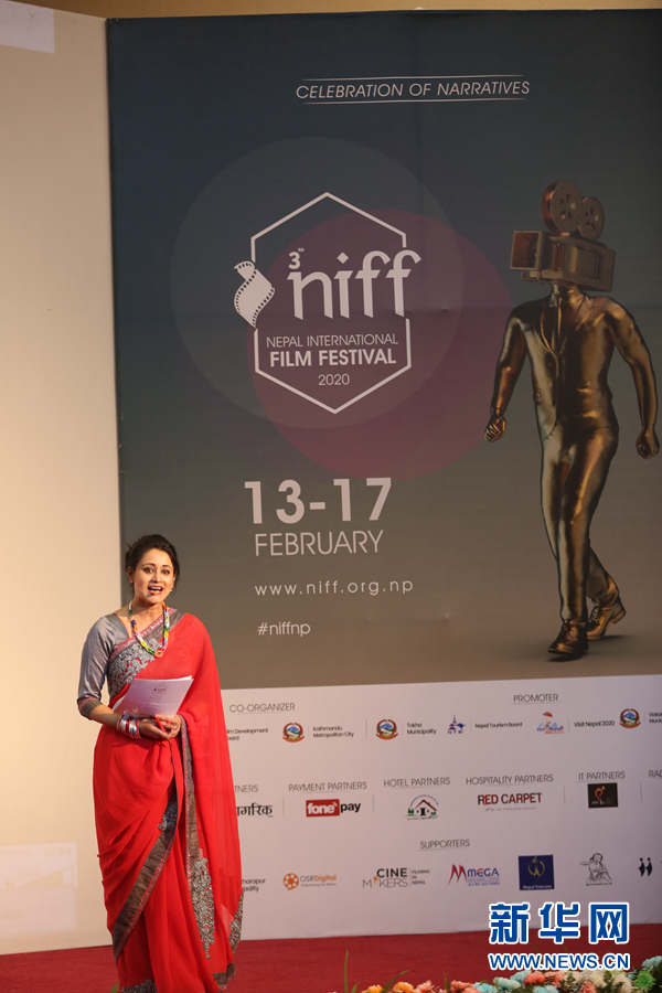 2月17日,尼泊爾加德滿都市政大廳,優雅美麗的主持人在第三屆尼泊爾國際電影節在加德滿都閉幕儀式上。本屆電影節2月13日開始,一共有來自40個國家和地區的80部影片入選,其中中國和哈薩克斯坦聯合拍攝的《音樂家》作為開幕電影,備受關注。記者 唐薇 攝